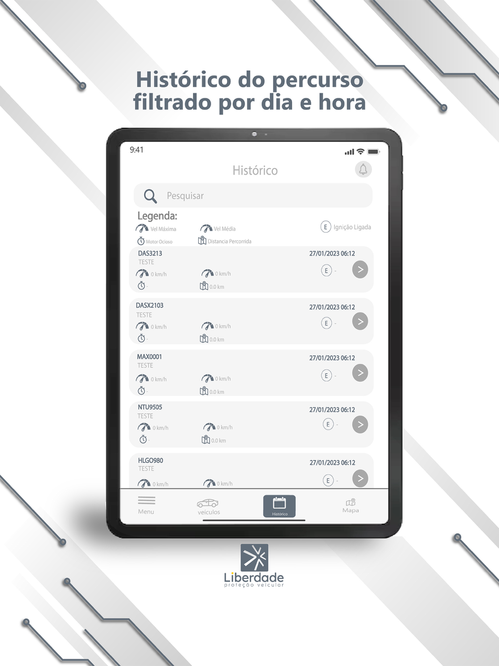 - Histórico do percurso por onde passou filtrando por dia e hora