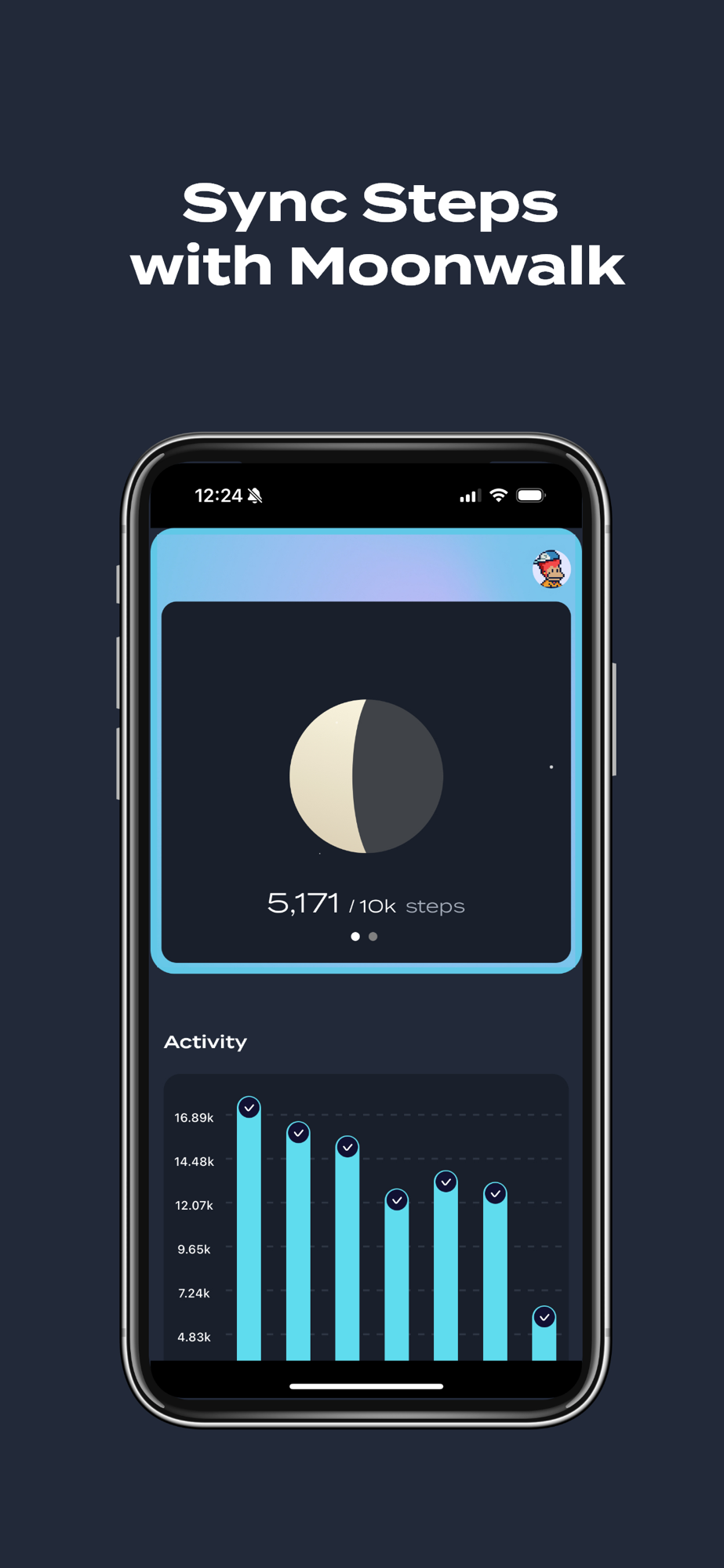 Daily Step Goals: Set and achieve your personalized step goals. Watch the moon wax as you get closer to your target, giving you a satisfying visual representation of your efforts.