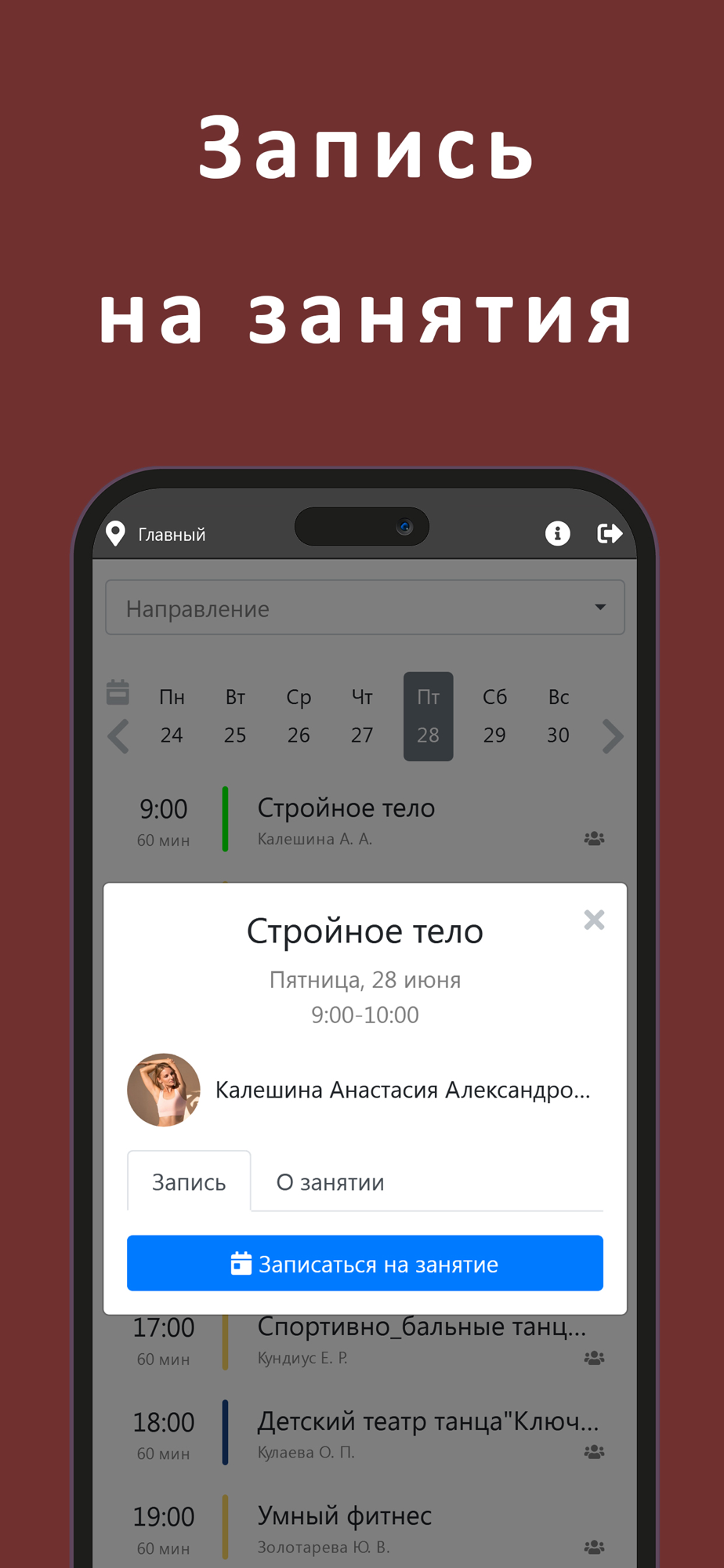 С помощью приложения вы сможете смотреть расписание, записываться на занятия, отслеживать действующий абонемент и свои посещения в Cherry.fitness.