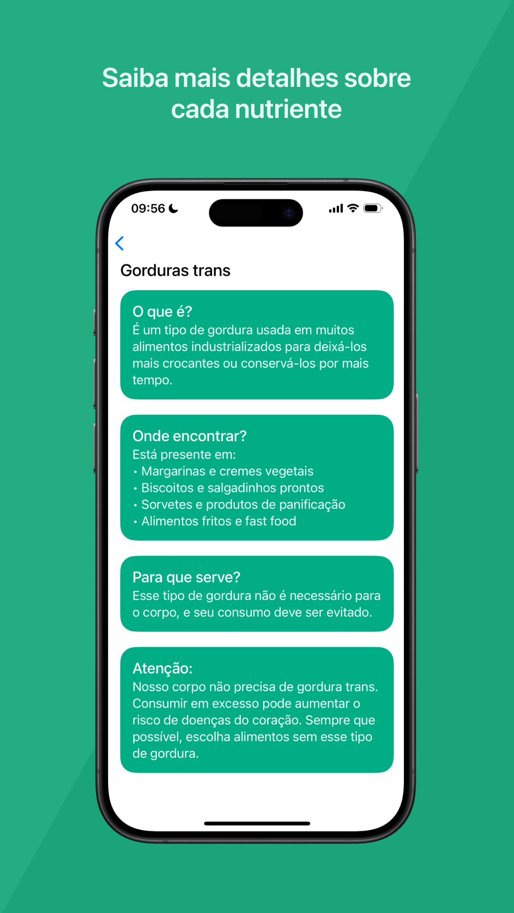 • Visualização otimizada – Os dados são apresentados em cards organizados, facilitando a compreensão das informações nutricionais.