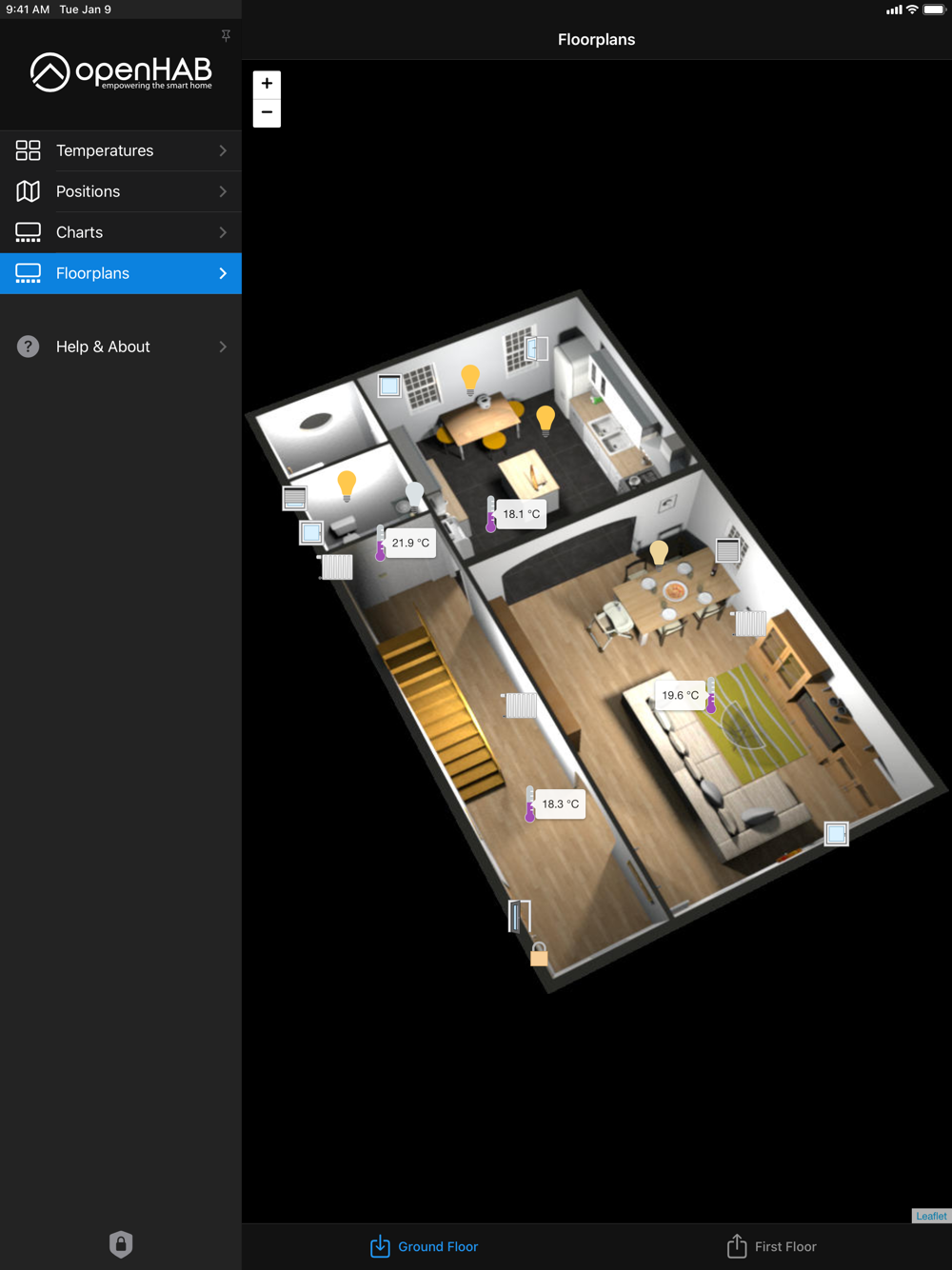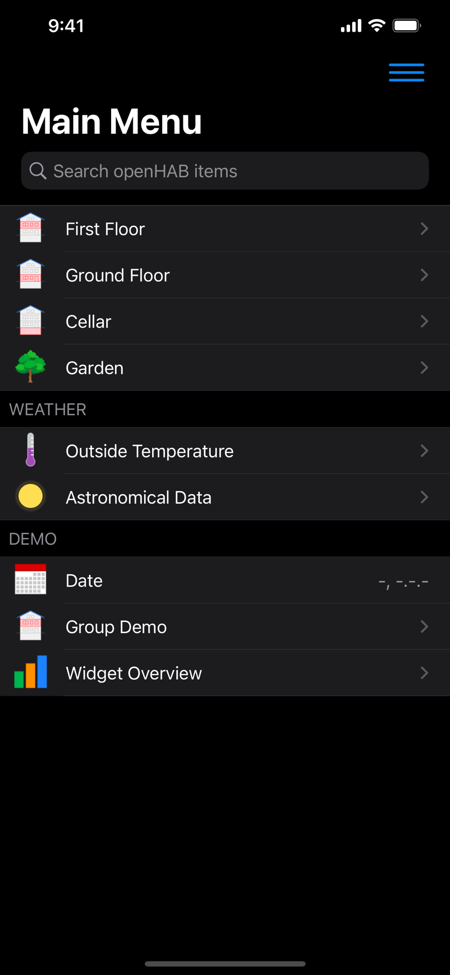 * Control everything on your openHAB server directly or remotely through the free openHAB Cloud service (https://myopenhab.org)