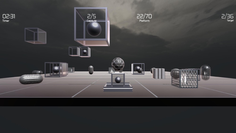 In this game, you'll manage a platform filled with various objects: spheres, cubes, and cylinders with different textures.
