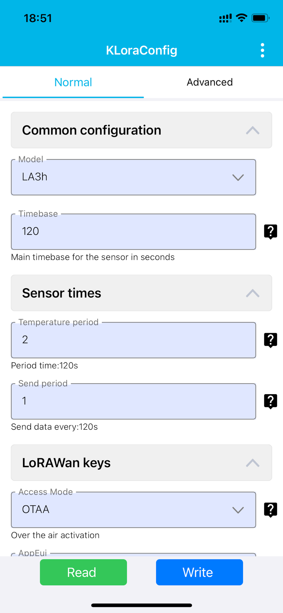 KLoraConfig APP is used to configure the LoRAWAN sensor device released by KKM. The sensor device supports the standard LoRAWAN protocol and supports third-party LoRAWAN networks.