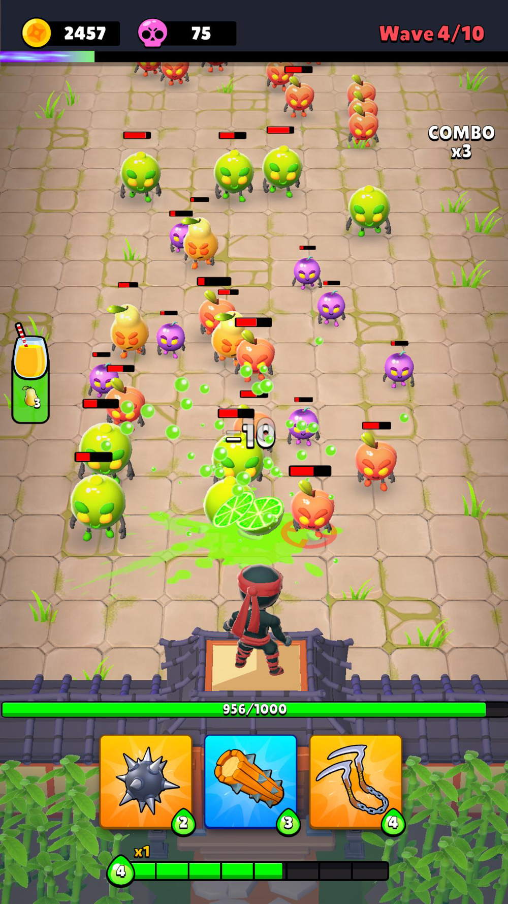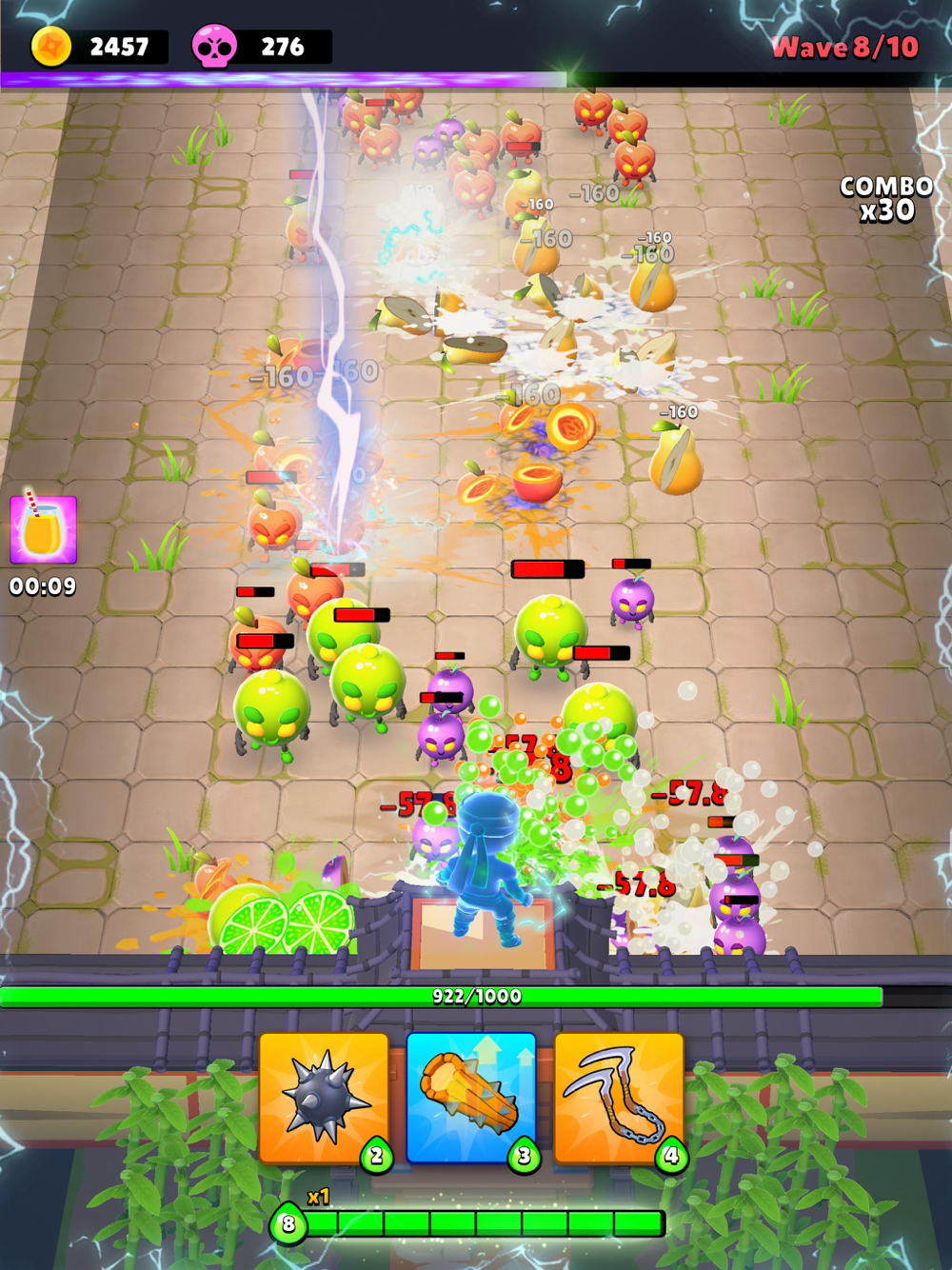 Engage in fast-paced, action-packed battles as you fend off waves of fruit enemies.