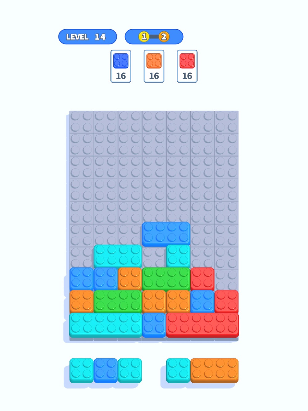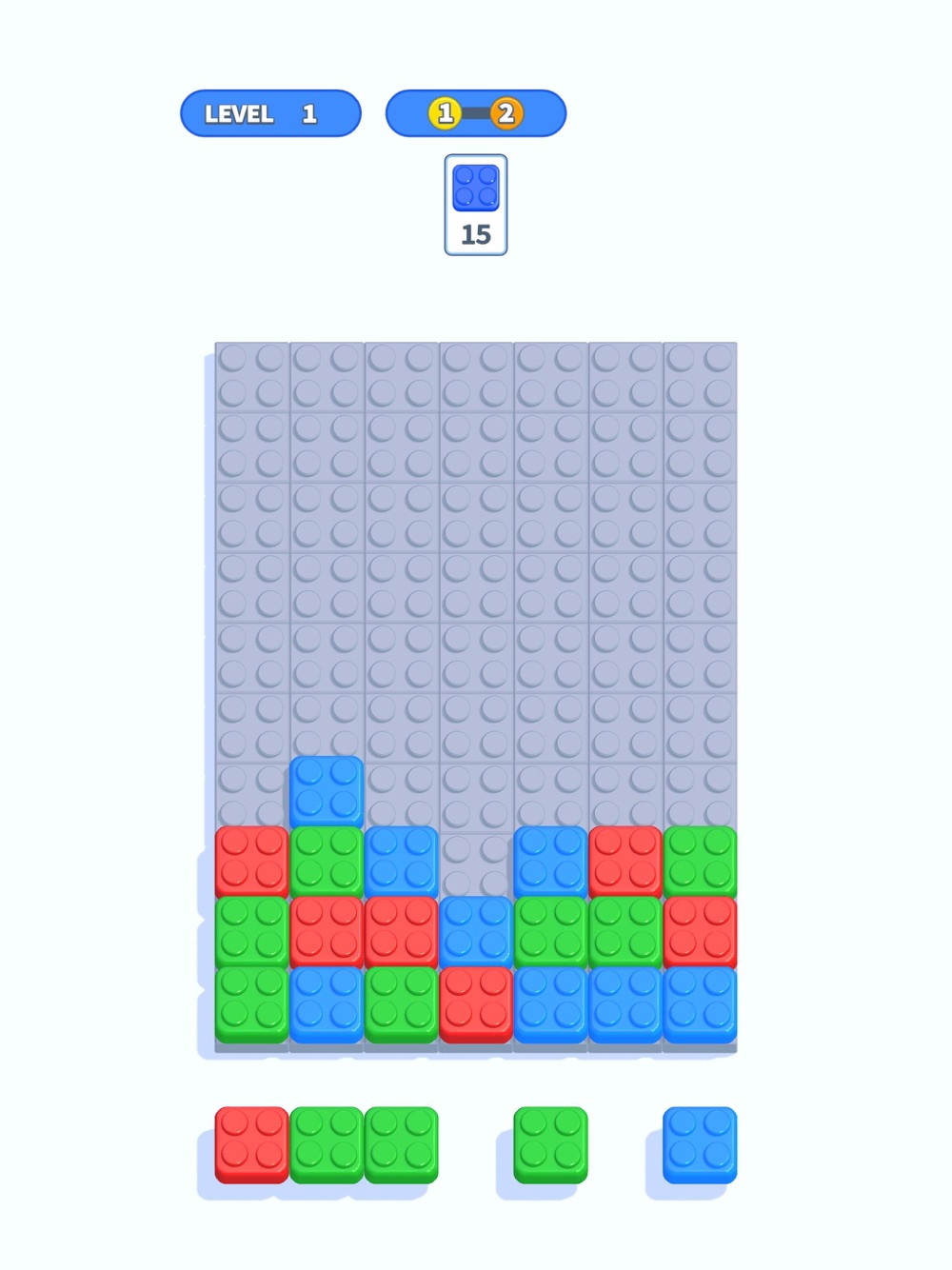 Sliding the blocks on the board and matching 3 colors to collect them.