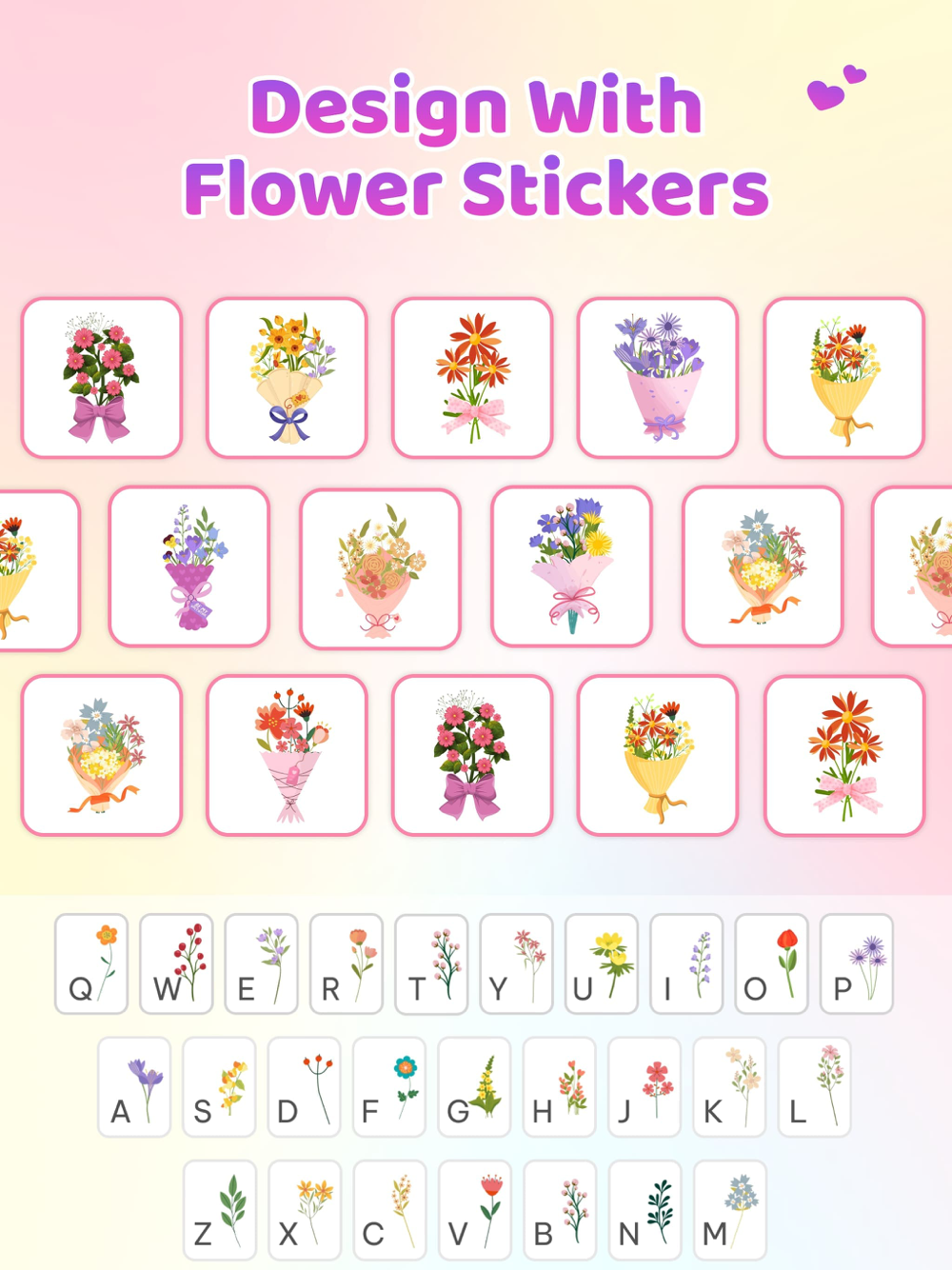 Choose themed keyboards where each letter represents a different flower. Customize your bouquets by selecting your favorite blooms or combining letters from various keyboards to express your unique style.