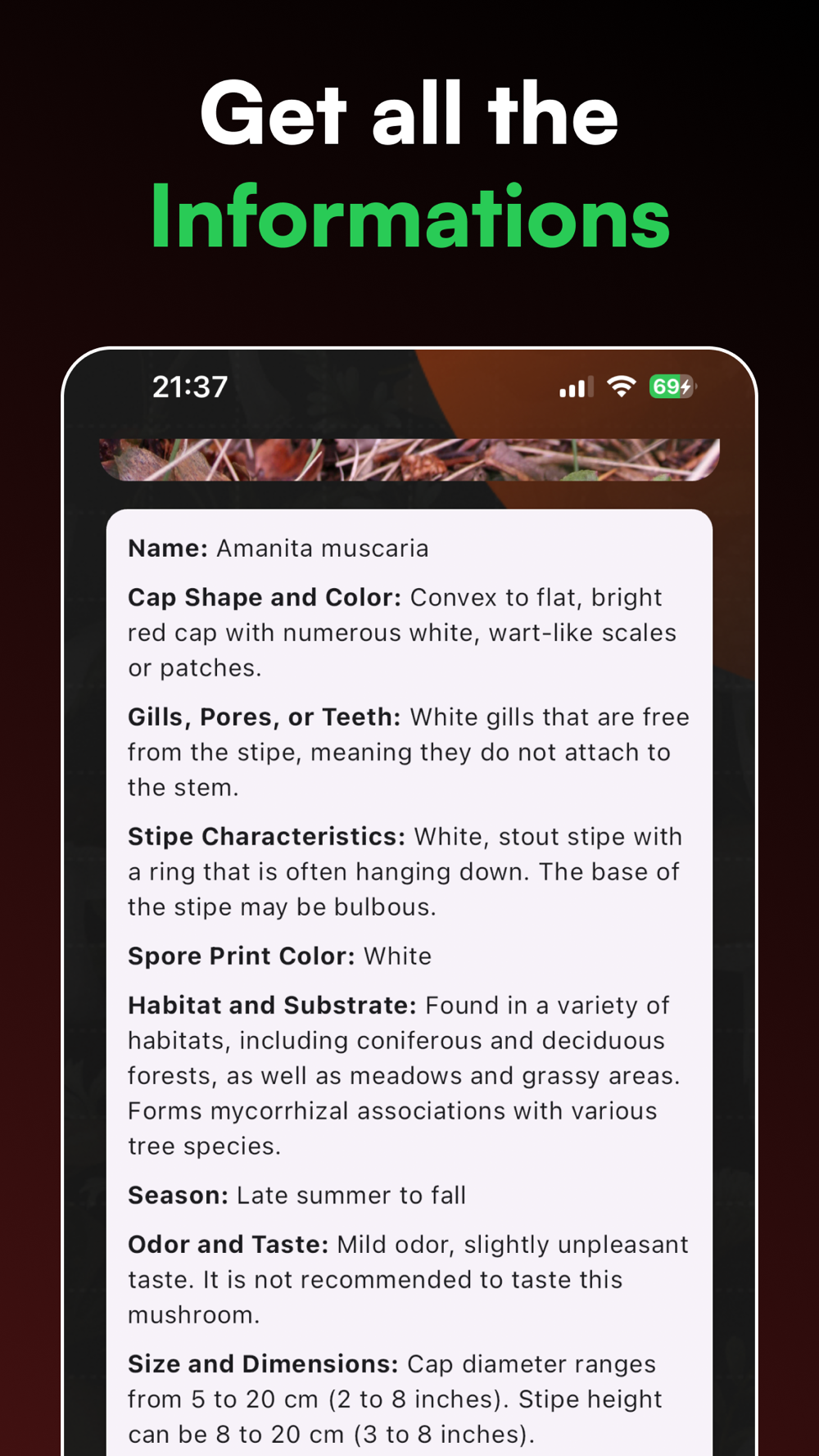 - Instant Identification: Simply snap a photo or upload an image of a mushroom, and our AI-powered app will identify it in seconds.