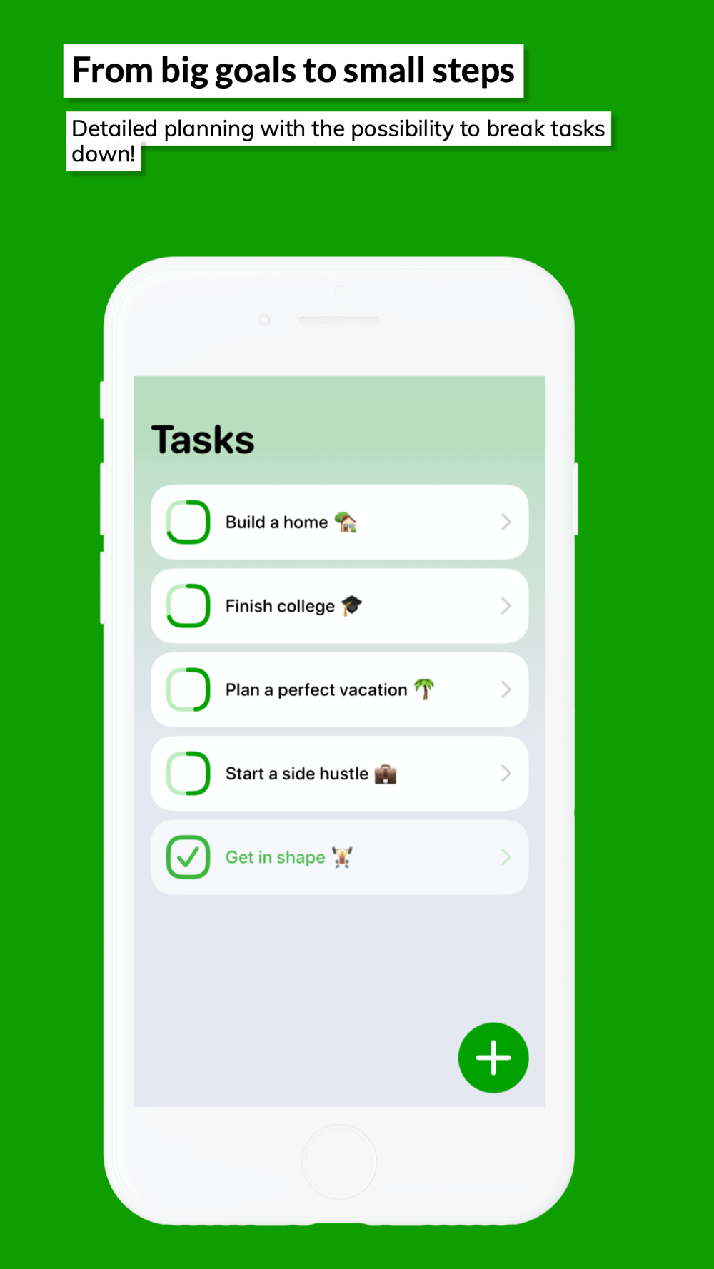 From big goals to small steps: Detailed planning with the possibility to break tasks down!