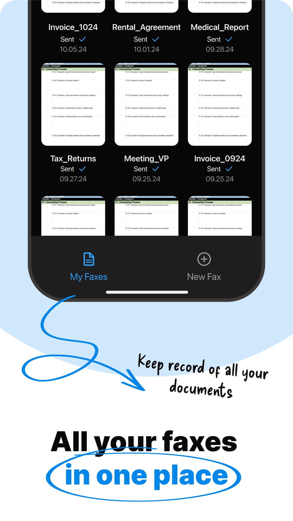 - Organized Document Management: Easily keep track of all your sent faxes and organize them for quick access.