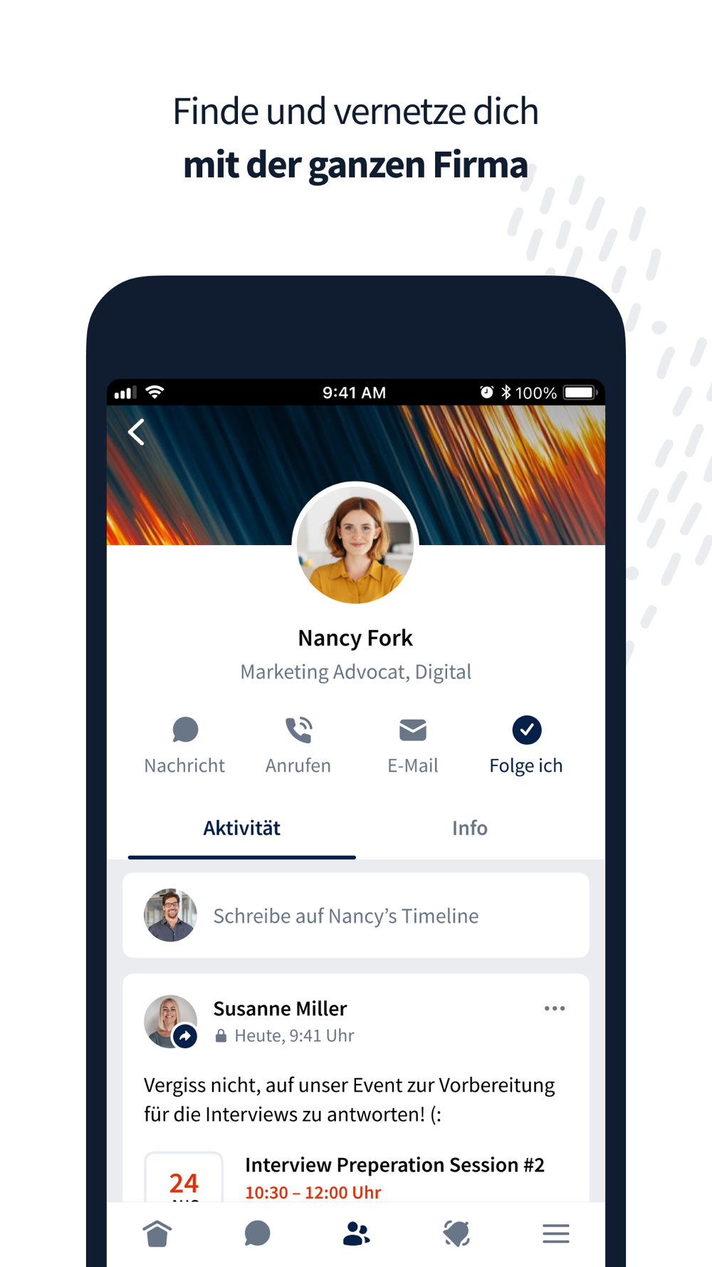 Dies ist Inside RH, die App für alle Mitarbeiterinnen und Mitarbeiter der RH Diagnostik und Therapie GmbH! Zusammenarbeit und enger Austausch sind entscheidend für uns. Mit dieser App sind wir alle verbunden! Von unseren Praxen aus den Bereichen Radiologie, Strahlentherapie und Nuklearmedizin über unsere zentralen Bereiche bis hin zur Geschäftsführung – hier treffen wir uns alle.