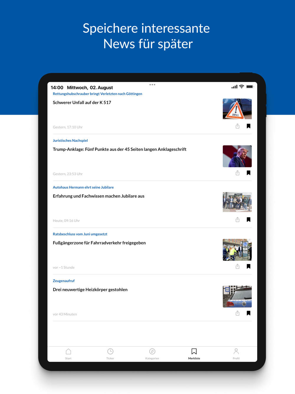 Die kostenfreie App von leinetal24.de bringt alle Neuigkeiten und Wissenswertes aus den Landkreisen Hildesheim und Northeim sowie aus Deutschland und der Welt direkt aufs Smartphone. Optional ist eine Push-Benachrichtigung möglich, wenn für Dich relevante Inhalte veröffentlicht werden. Außerdem kannst Du interessante Meldungen über die Bookmark-Funktion speichern und später in Deiner Merkliste abrufen sowie alle Artikel mit Deinen Freunden teilen.