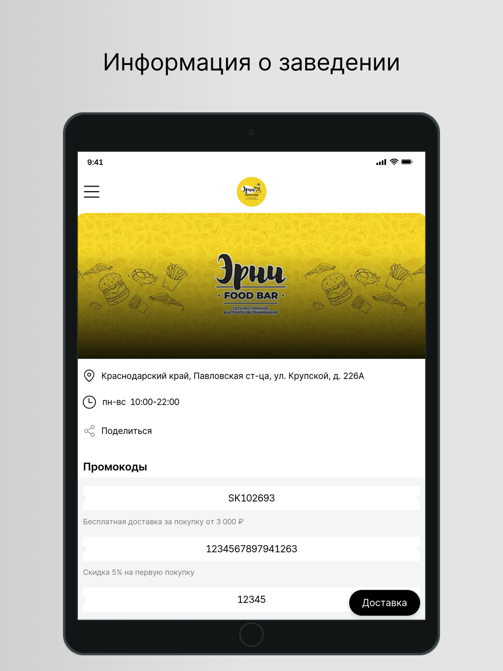 Любимые блюда должны быть доступными. Любимые блюда необходимо готовить только из качественных продуктов, с особыми вниманием и заботой. Ну и конечно же, покупка любимых блюд должна быть как можно легче и удобнее, с этой целью и было разработано приложение «Эрни Food Bar»!