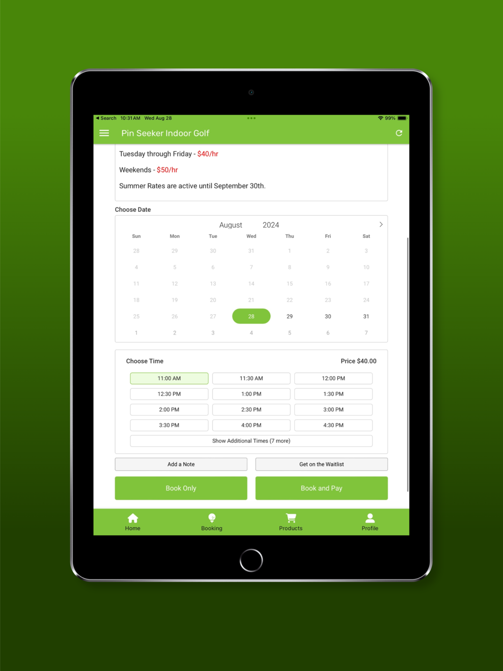 The Pin Seeker Indoor Golf app is your go to app for scheduling and booking. Download today so you can easily rent a simulator, purchase a membership, manage your upcoming tee times, and more.