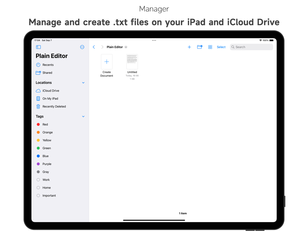 - View, manage, create, and edit plain text files (.txt) on your iPhone, iPad, and iCloud Drive.