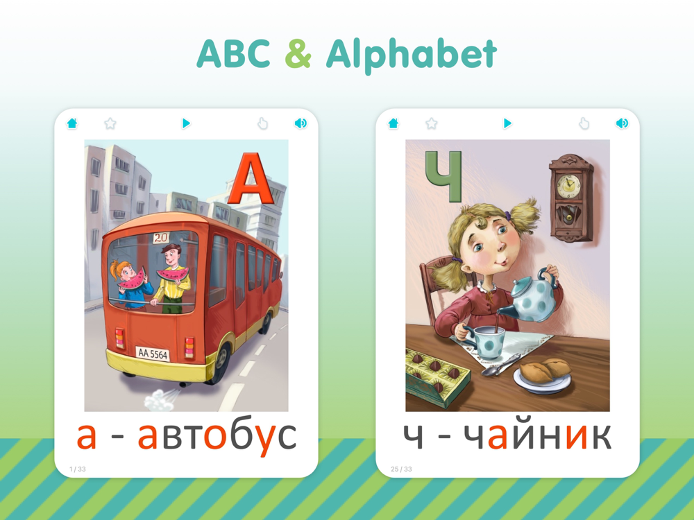 The application has 1500 sound flashcards in Russian language with bright images which are divided into topics and 8 learning games "Find a Picture", "Quiz", etc.