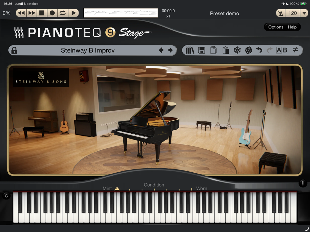 Note: All instruments run in demo mode (with some keys disabled) until you purchase a Pianoteq STAGE license (unlocks two instruments) or link to an existing Pianoteq user account with a valid license. Licenses purchased on the App Store are valid across other supported platforms (macOS, Windows, Linux).
