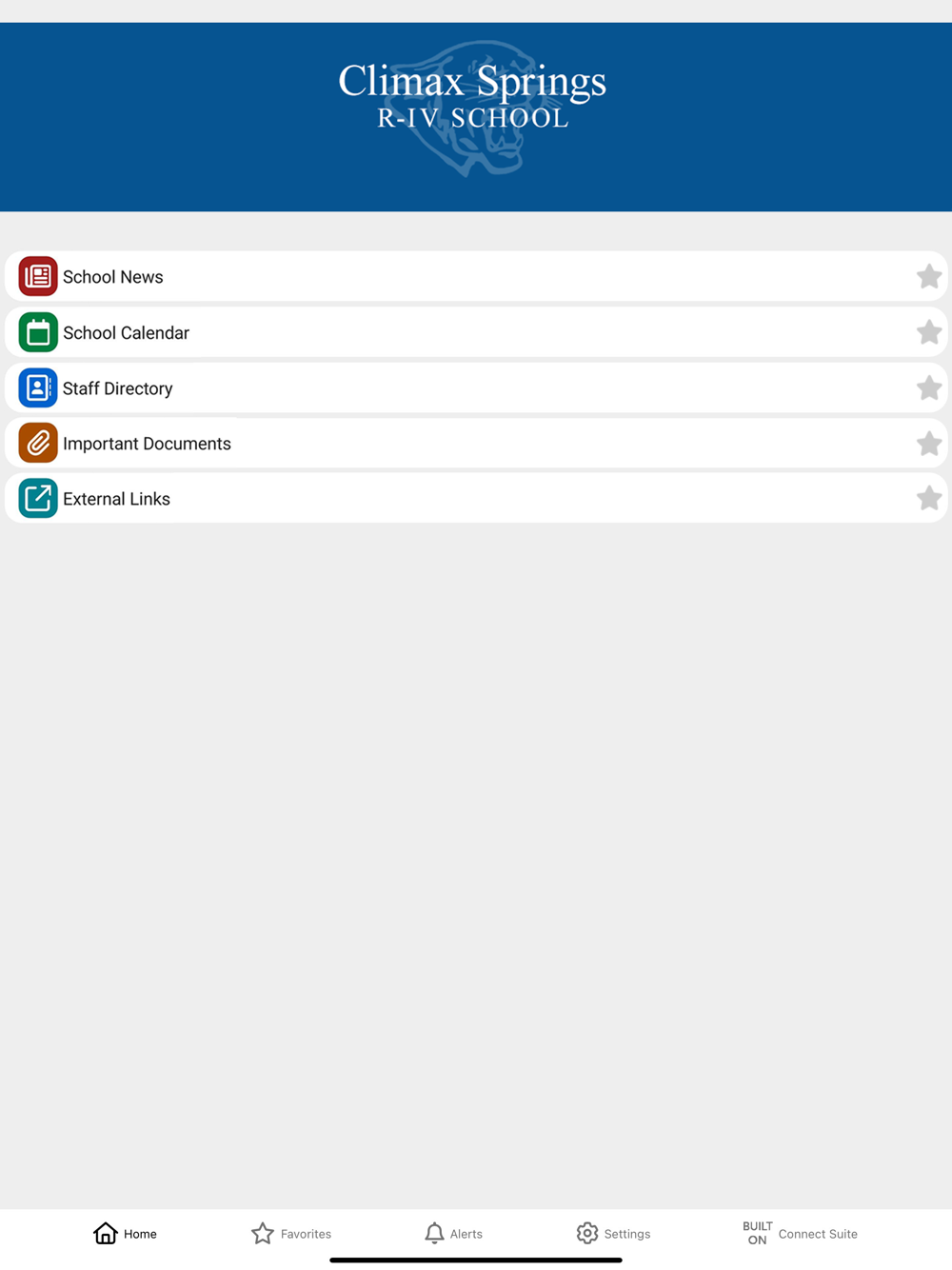 Stay connected with the latest news and information from Climax Springs R4 District. District news to classroom assignments, cafeteria menus, and sports calendars - find and follow what is important to you! Push notifications enable you to always stay on top of important alerts from the district and schools.