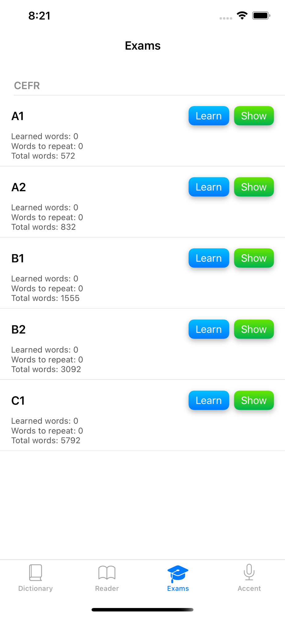 - CEFR A1 - C1 Word Lists: Gain the flexibility to tailor your learning journey—select words by theme or proficiency level, and watch your skills soar from beginner to expert.