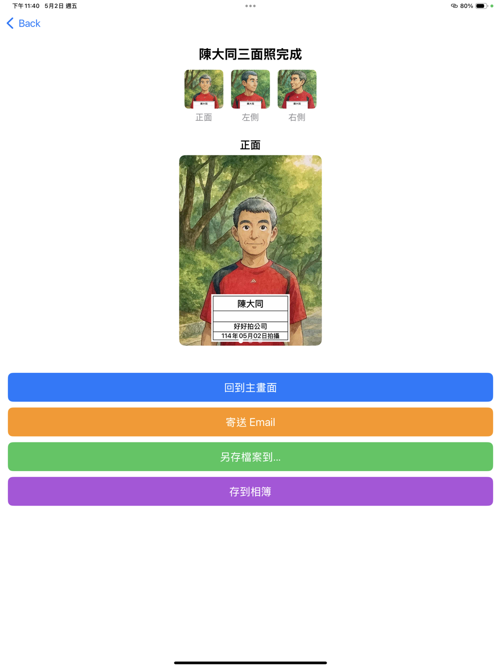 人像好好拍是一款專為警政、身分鑑識用途打造的專業拍照工具,支援正面、左側、右側等三面照拍攝,並可自動生成名牌,協助快速導出圖片與資料,適用於警察鑑識、記錄與內部建檔用途。