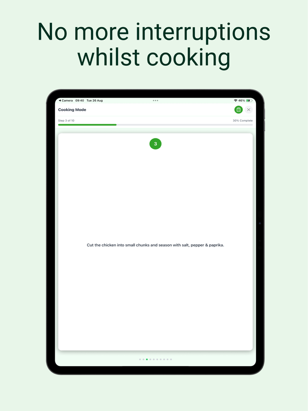 Cook Mode to keep your screen awake & easily follow step by step instructions
