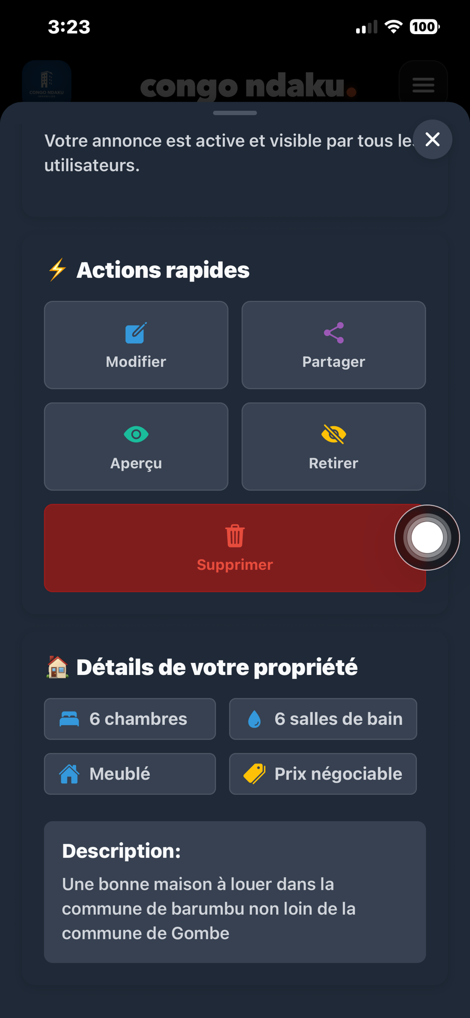 Congo Ndaku est l'application immobilière révolutionnaire pour la République Démocratique du Congo. Que vous souhaitiez louer, acheter ou vendre un bien, notre plateforme moderne offre une expérience unique et intuitive.