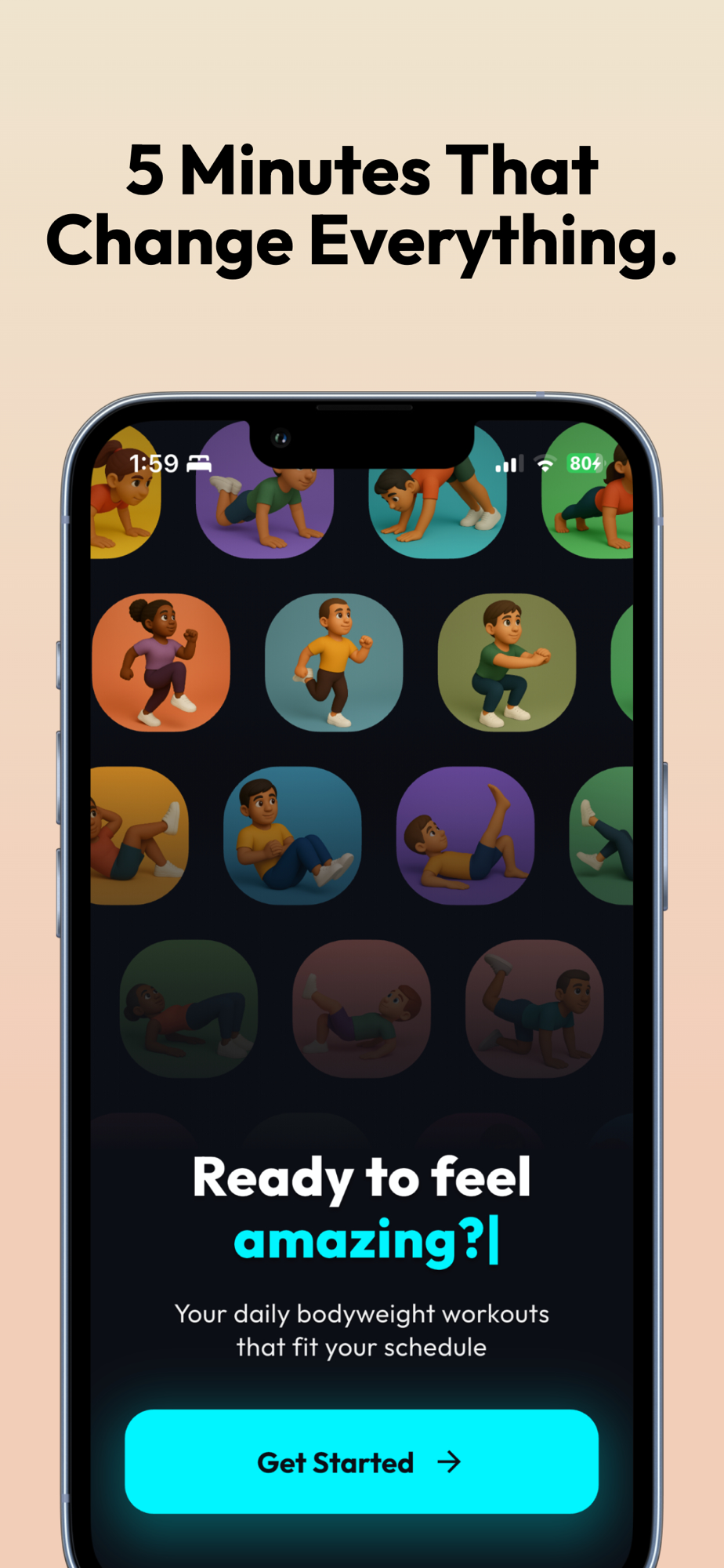 Open Fit each day for a carefully designed 5-minute routine that builds strength, increases energy, and gets your body moving. No complicated setups or lengthy workouts.