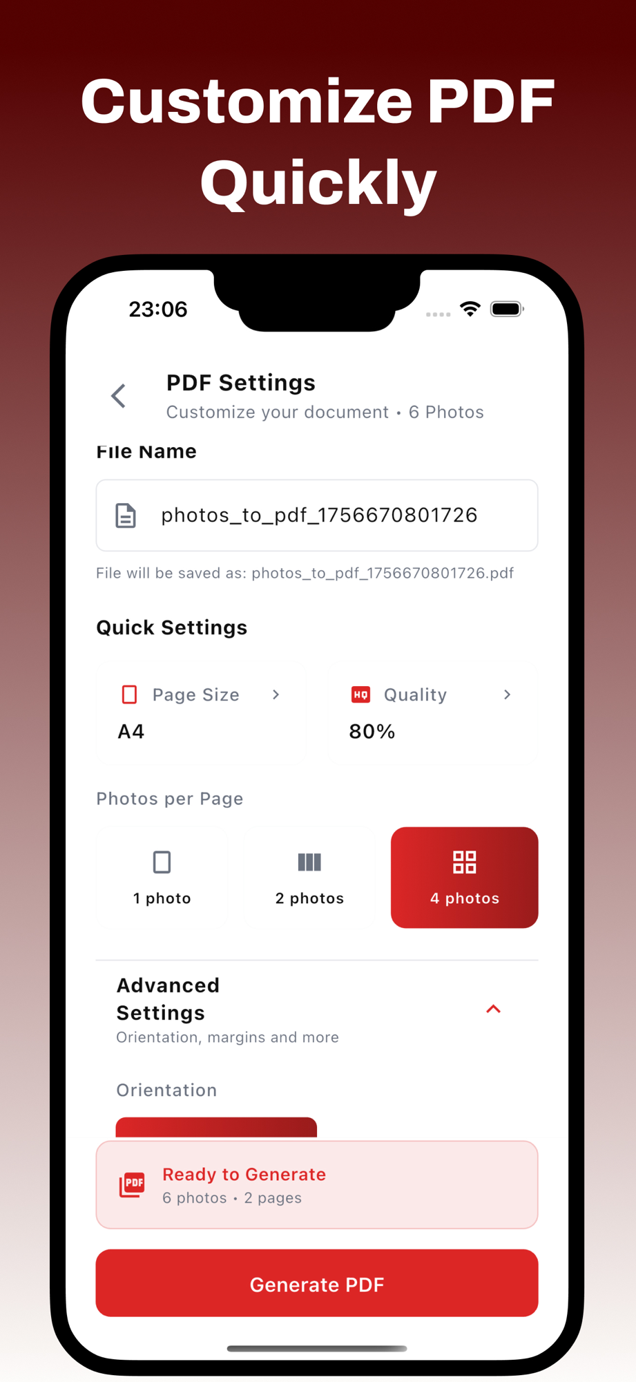 Transform your photos into professional PDFs with lightning speed. Whether digitizing receipts, creating photo albums,