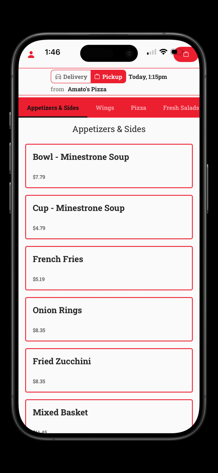 Online Ordering App for Amato's Pizza in Chicago, Il at the Elmwood Park Location
