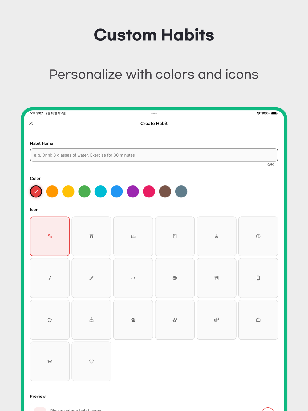 We removed all complex and unnecessary settings. A minimal habit maker for creating a new habit in just a few taps. You just need to focus on building your daily routine.