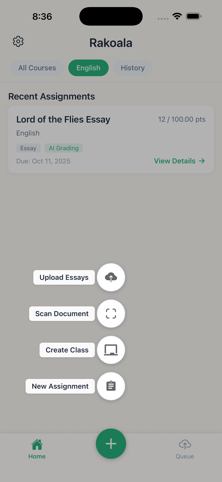The mobile companion to Rakoala.com - bulk upload handwritten student essays and let Rakoala automatically sort and organize submissions based on student names.