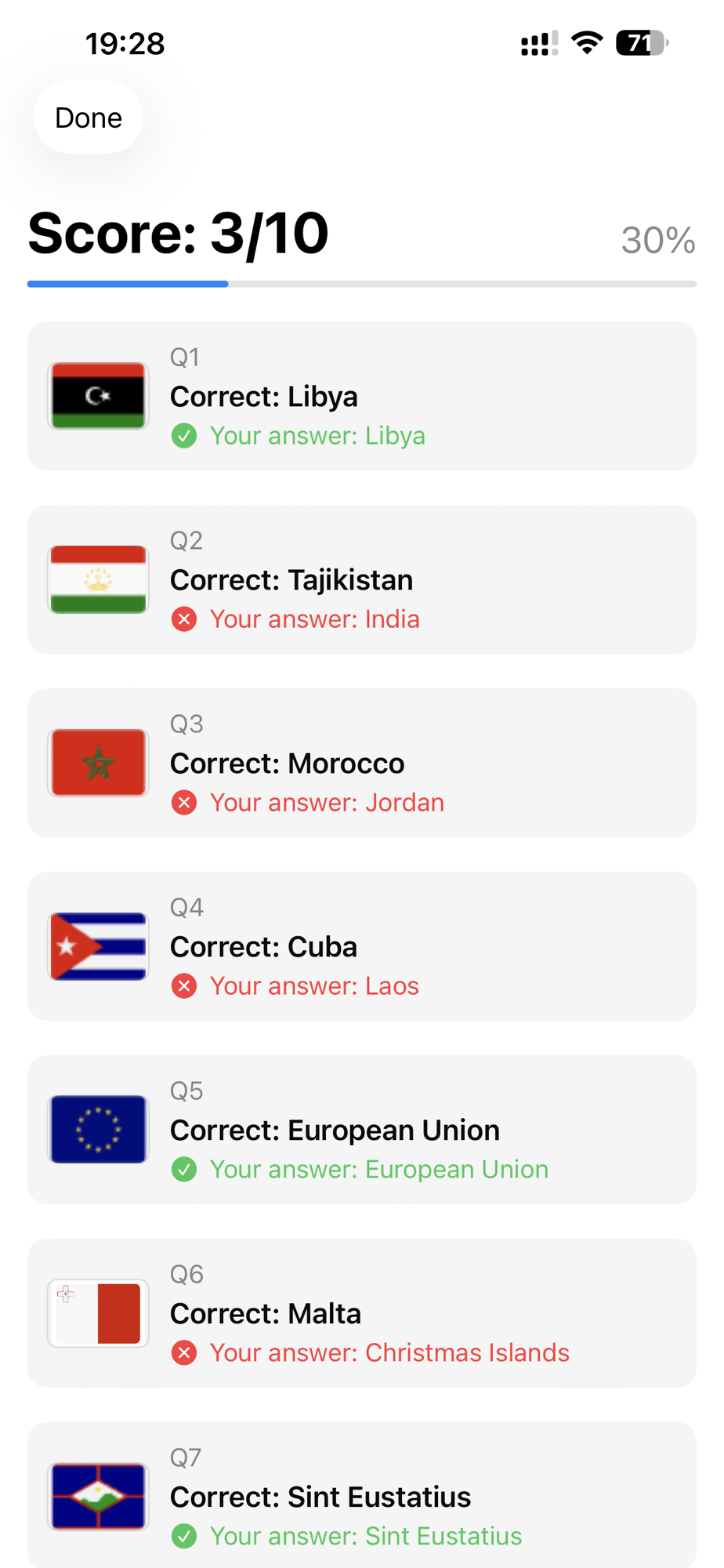 With 240 country flags to identify, this game is perfect for geography lovers, students, travelers, and anyone who enjoys testing their global knowledge. Every round brings a new challenge — guess correctly, earn points, and climb your way to a perfect score!
