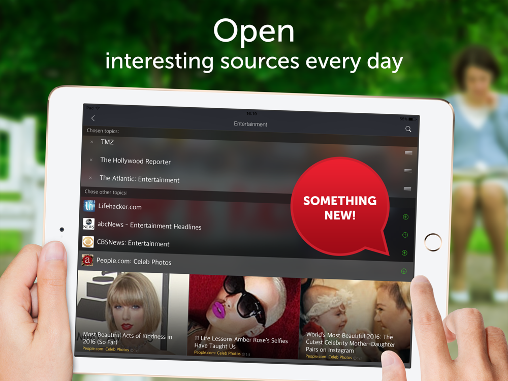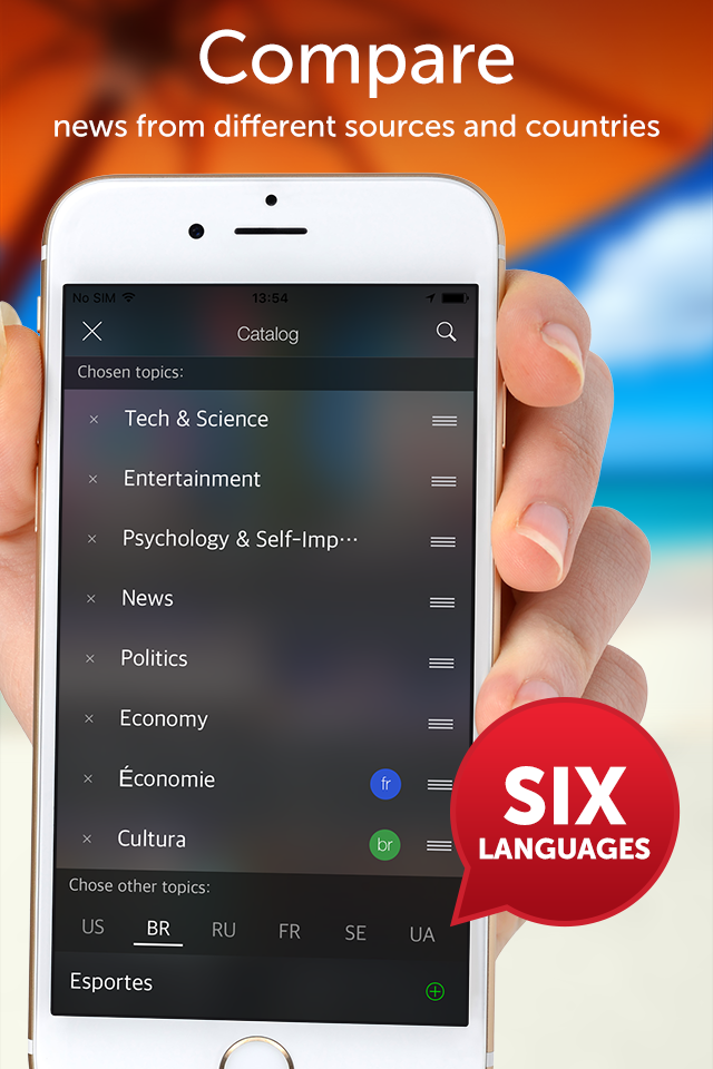 1) The main feature of our app is the ability to edit and personalize the news feed by adding and removing categories and sources. You can connect any global or regional media (New York news, LA, Washington etc.) ;