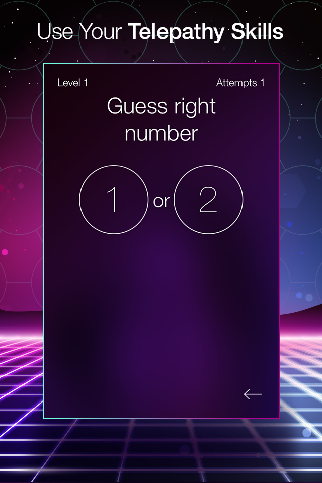 Telepathika is a simulator for training human exceptional abilities. Pick a number from 1 to 10, add a number that you picked, multiply by 5, then divide by a number you picked. You got 10, don’t you? In far 1882 Frederick Myers first time used a term “telepathy” during one of his thought-transfer experiments. There’s an idea that telepathy forms the basis of human intuition, and with the course of evolution more and more people all over the world had started to discover a concealed humans ability. But we need to train hard – that’s the only way to reveal this super-ability of human brain.