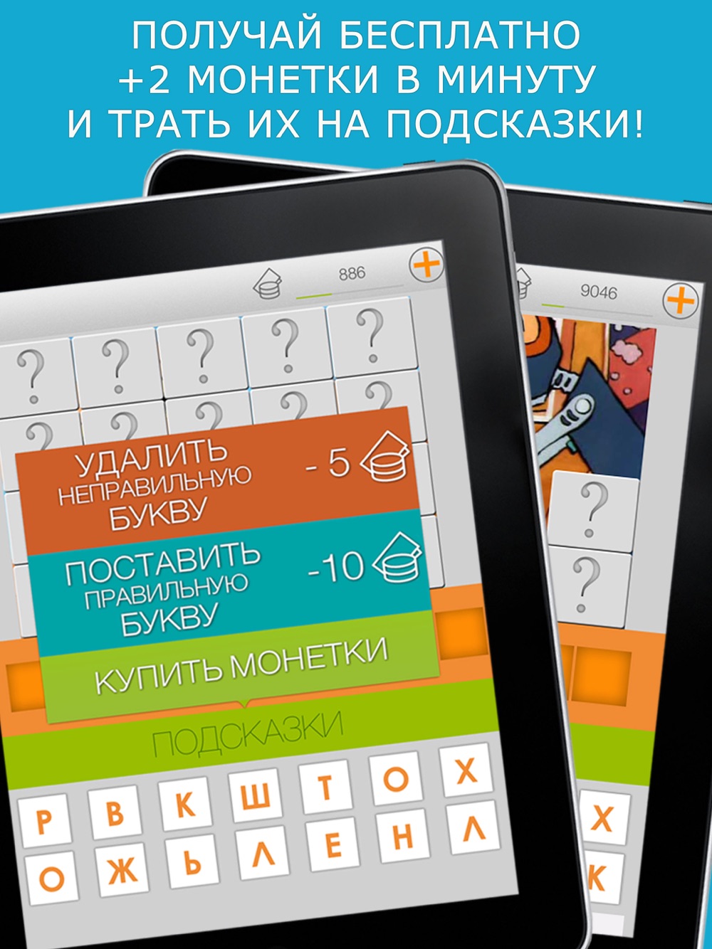 *** Не нужно покупать подсказки за реальные деньги! Смело их используйте, ведь игровые монетки набегают сами собой, совершенно бесплатно (+2 за каждую 1 минуту)