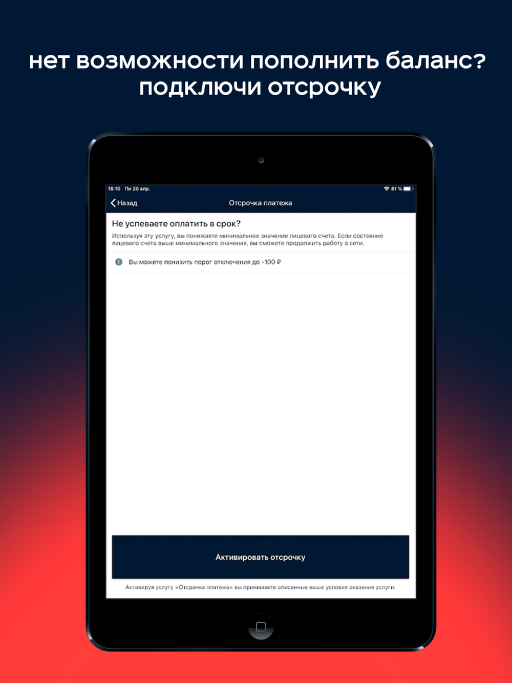 - Включить отсрочку платежа,