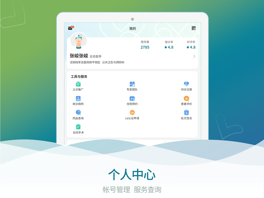 1. 【移动诊室】解答患者问题,为患者提供在线的图文、电话、视频问诊服务;