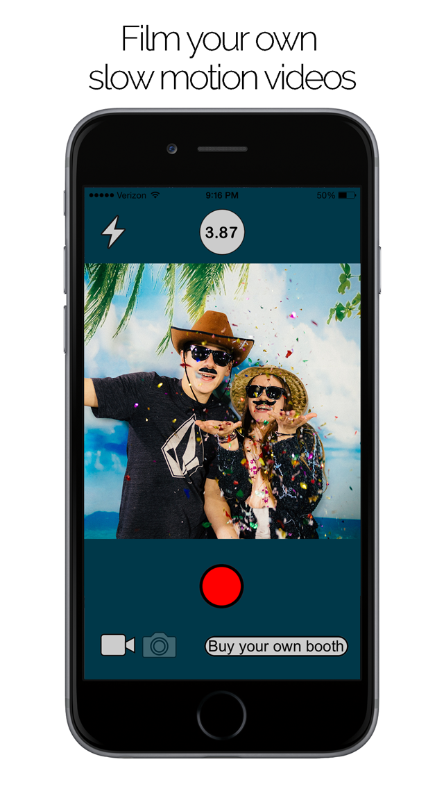 Use Slo-mo Booth to film your own slow motion videos and create fun photo strips. Slo-mo Booth makes it easy to save your videos to your camera roll and share on Facebook or Instagram right from the app.