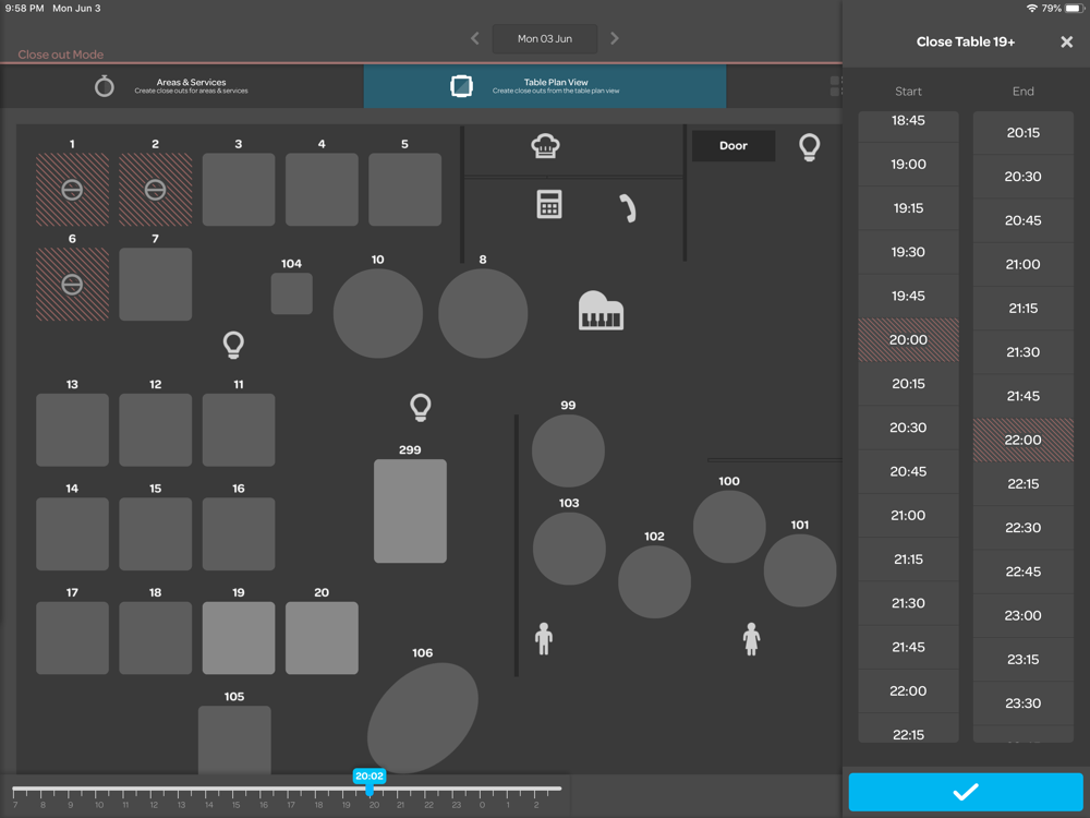 Close-outs - apply and remove closeouts for tables and areas within the app