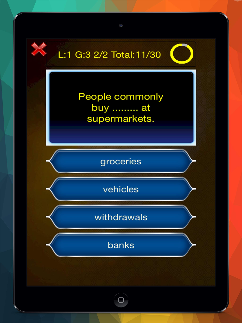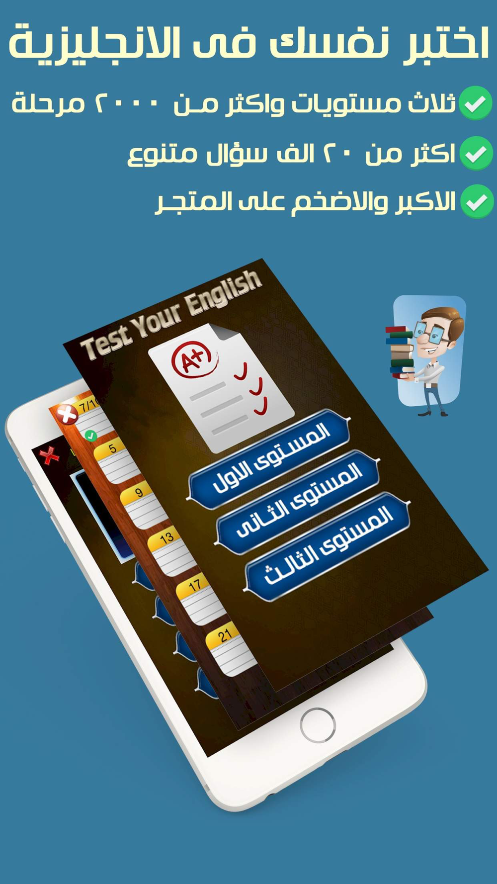 من أكبر التطبيقات على المتجر لتختبر نفسك فى الانجليزية من خلال ثلاث مستويات واكثر من 2000 مرحلة و20 الف سؤال متنوع
