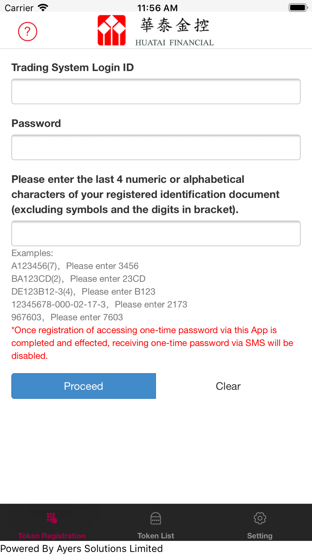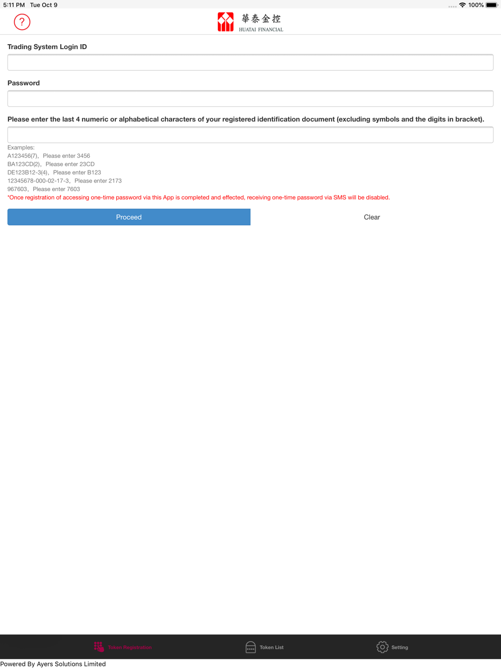 Huatai Token is a Two Factor Authentication software for securities trading for Huatai Financial Holdings (Hong Kong) Co., Ltd. Once registered and enabled, it can generate security codes without data network, which ensure trading anywhere anytime.