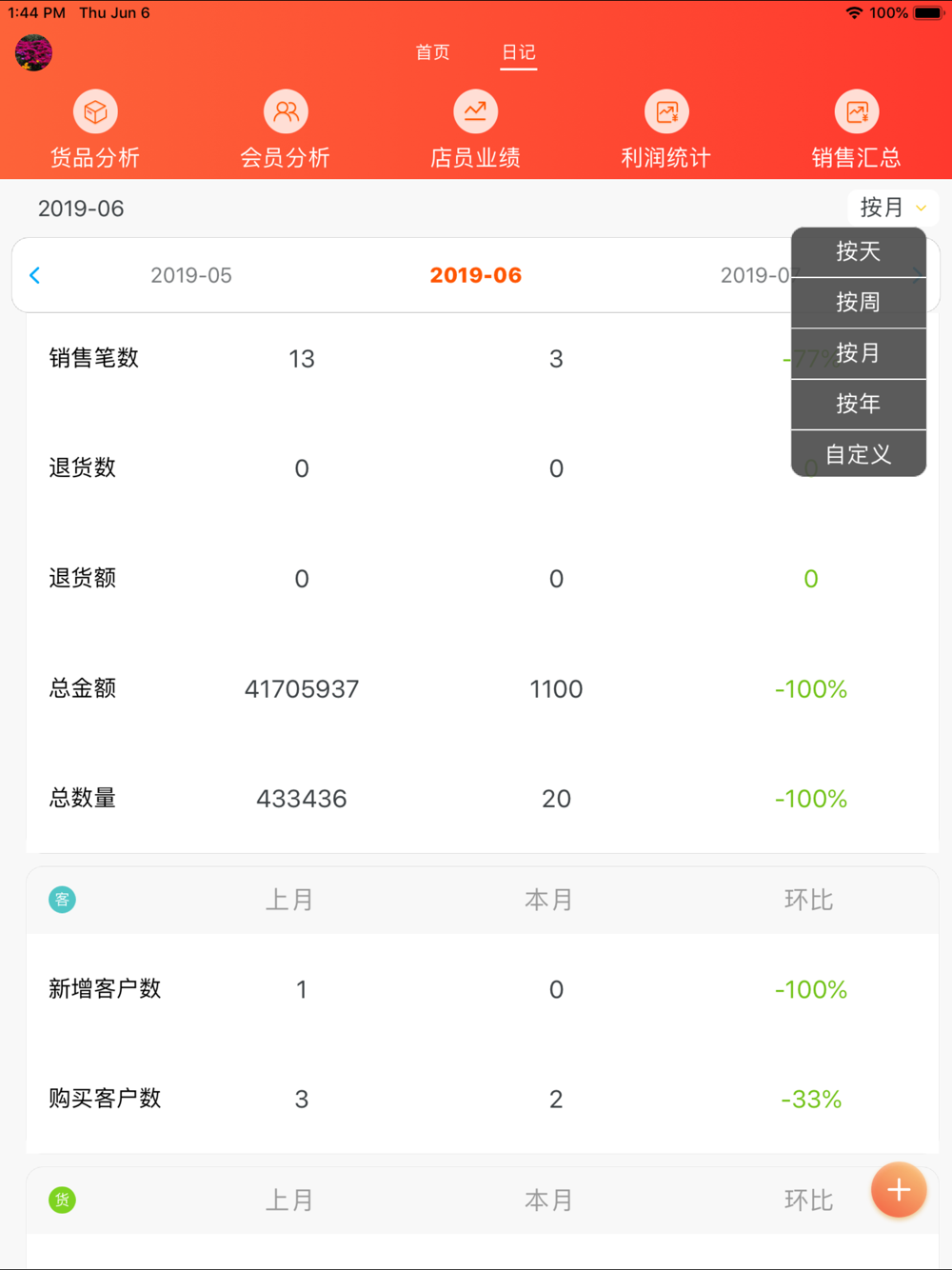 6、报表功能,自动生成各种报表,提供各种数据分析,经营状况一目了然;