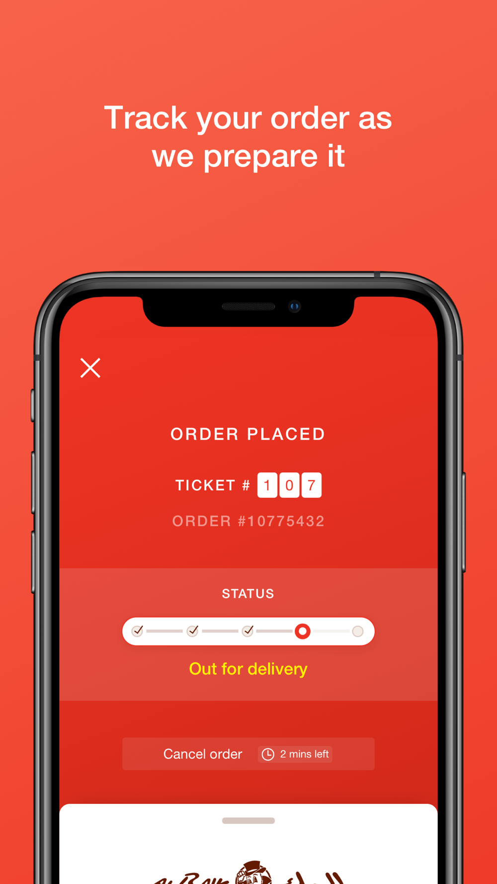 6. You will receive push notifications confirming your order and with real-time status updates as we prepare your food and bring it to you.