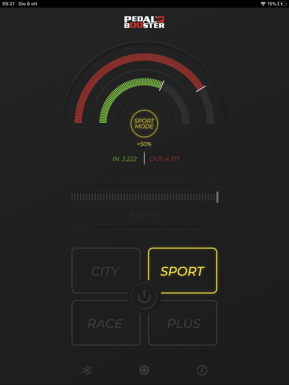 Con un semplice gesto scegli istantaneamente lo stile di guida più adatto alle tue esigenze: usa il tuo smartphone come un telecomando per avere il controllo del tuo PedalBooster! Sei City, Sport, Race o Plus?