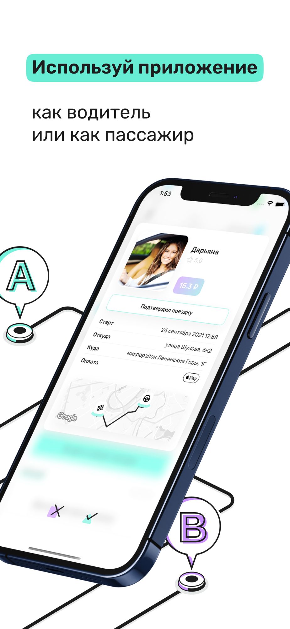 Пассажир и водитель ставят оценки друг другу после каждой поездки. Следующий пользователь будет видеть оценку водителя или пассажира, а также его текущий рейтинг. Поездку можно отменить в случае, если попутчик вам не по душе.