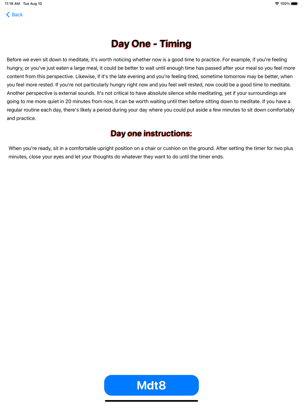 Meditate to Relax breaks the process of learning to meditate into eight sections over eight days.