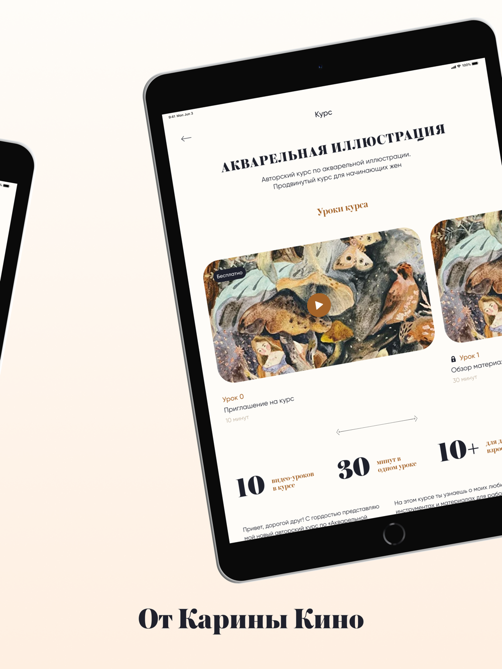 Karina Kino's Author's App offers various authorial creative courses. You will definitely enjoy aesthetic and informative video lessons shot in professional quality. The courses are suitable for both practicing illustrators and beginners.