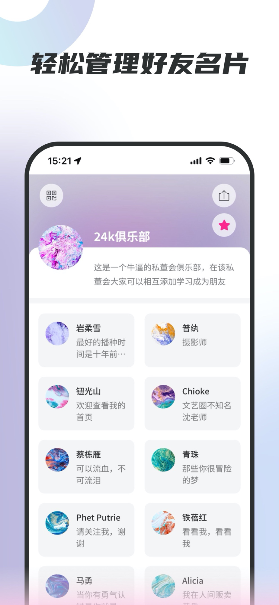 基于用手机碰一碰NFC芯片的贴纸从而查看用户数字名片的软件,通过APP激活并在APP内设置个人信息、通讯录管理、个人名片管理等功能