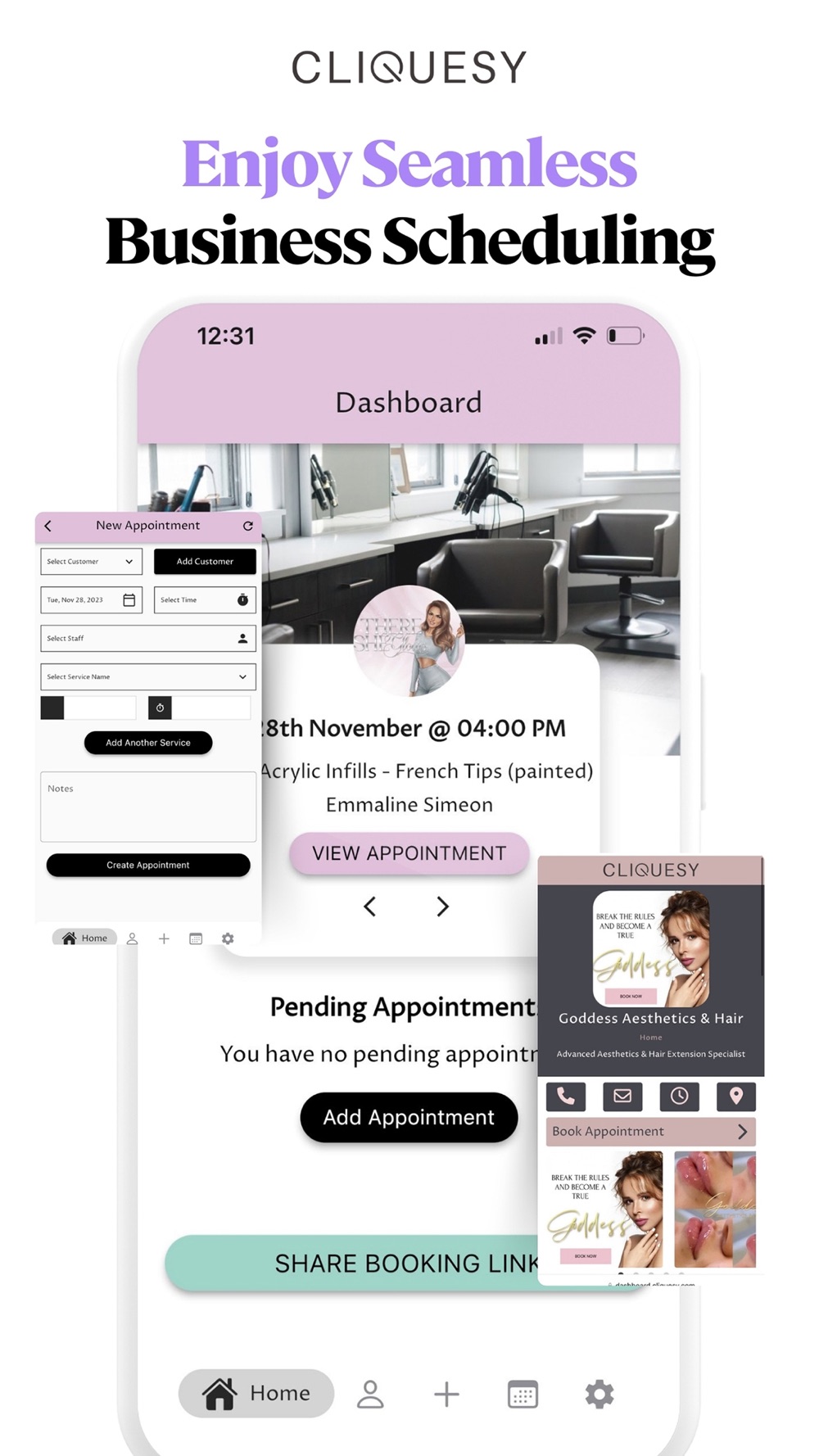 Get real life reviews after bookings have taken place and share them to your social media channels from the Cliquesy app to show everyone just how good you are at what you do!