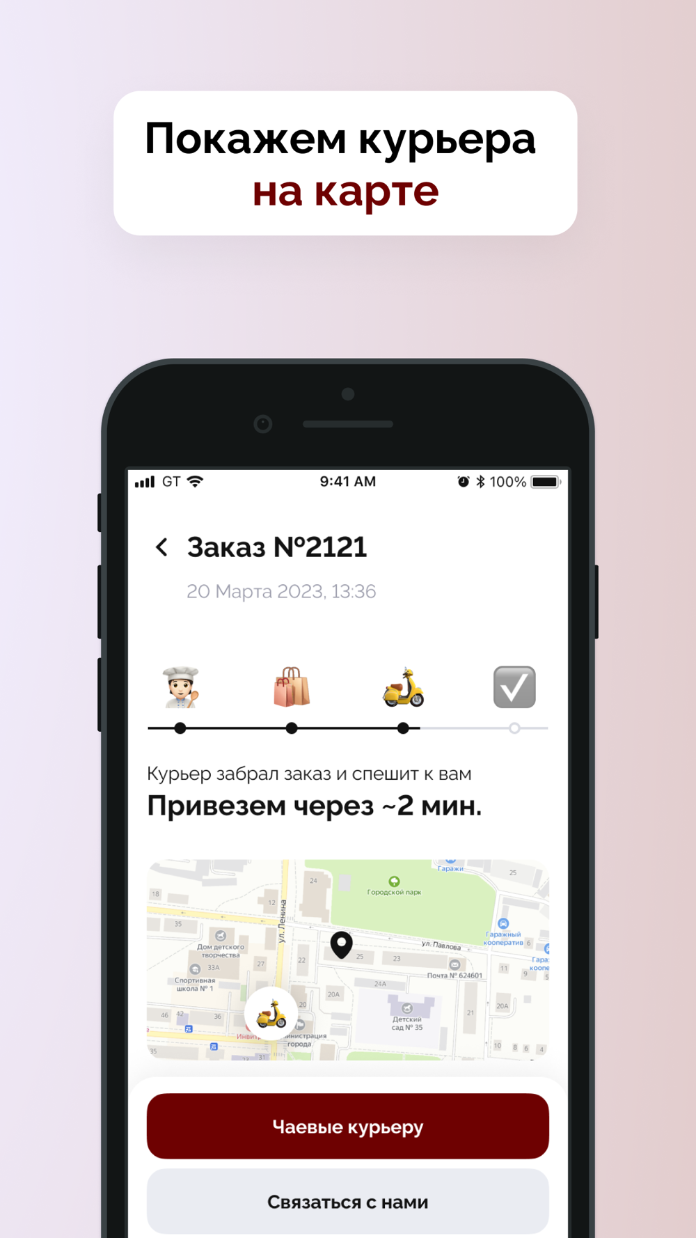 - Обновили версию и сделали наше приложение еще удобнее. - Следите за статусами заказа и где находится курьер на карте. - В истории заказа, вы теперь можете повторить заказ и увидеть сколько бонусов накопили.#hotfix