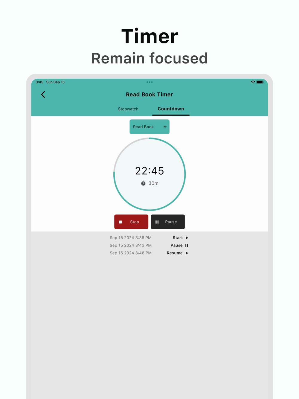 Timers: Stay focused with stopwatch or countdown timers for time-bound habits.